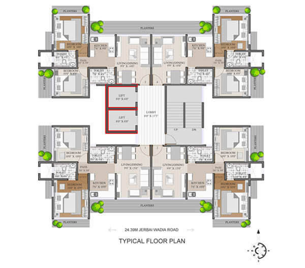 | FLAT TYPE = | 1BHK–410 SQ.FT | 2BHK – 513 SQ.FT |