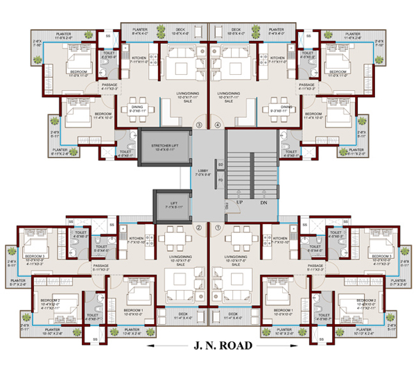 | FLAT TYPE = | 1BHK – 445 SQ.FT | 2BHK – 640 SQ.FT | 3BHK – 860 SQ.FT |